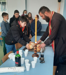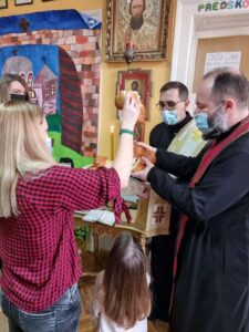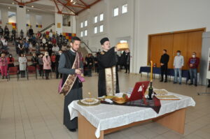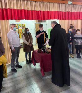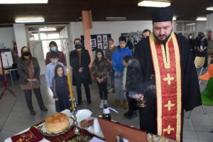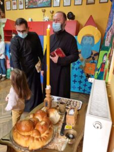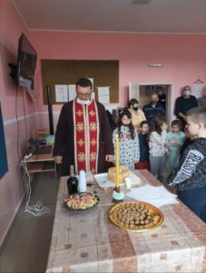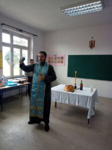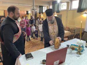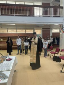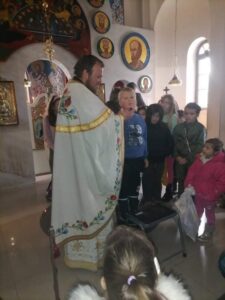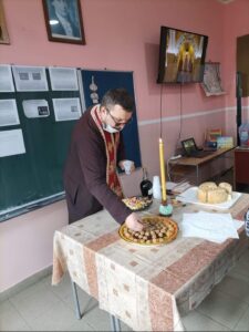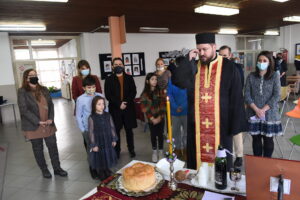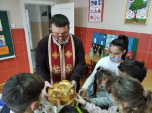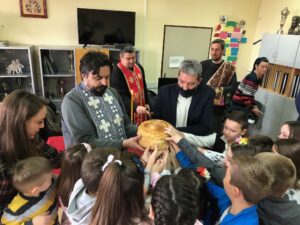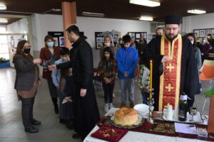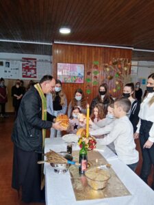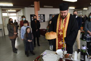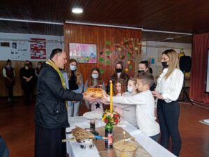 Отац Предраг Велимировић честитао је ђацима и наставницима славу, похвалио их што су успели да се организују уз поштовање епидемиолошких мера и прославе достојно овај велики празник.