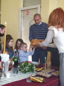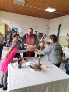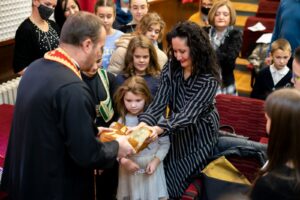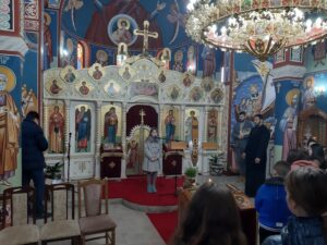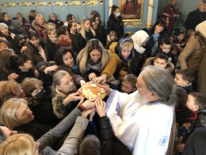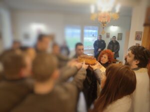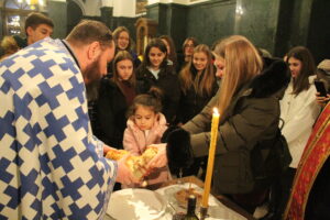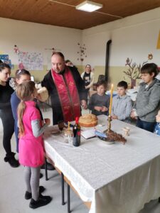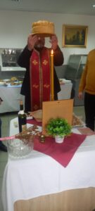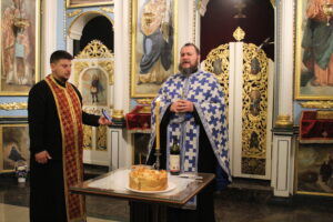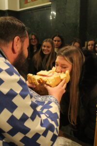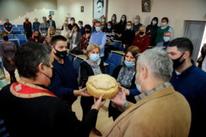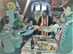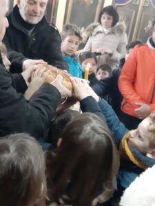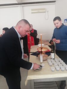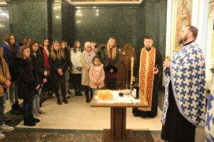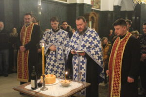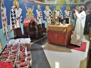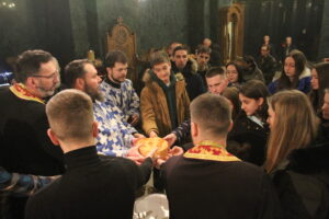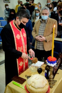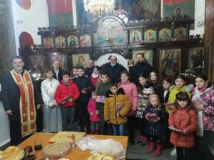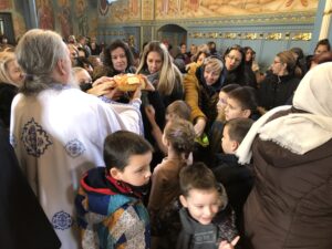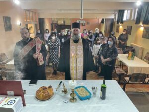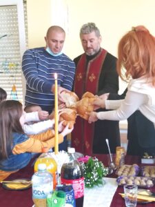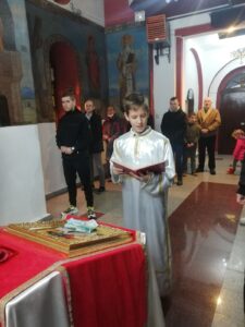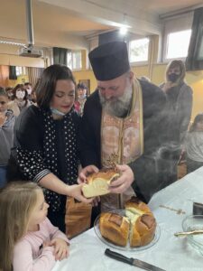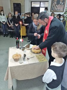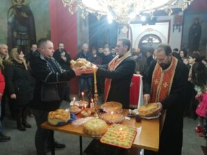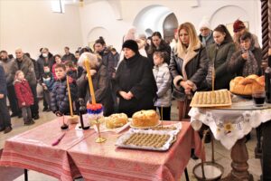 Након вечерње службе, преломљен је колач у част и спомен нашег Архипастира, који је испред заједнице младих принела Јована Грчић. Приликом резања колача присутне вернике поздравио је отац Александар Вучај, и пожелео срећну славу свима, те исказао благодарност Светом Сави јер нам је својим подвигом подарио личну карту, и задатост какви треба да будемо. Све оно што јесмо и што треба да будемо дугујемо Светоме.