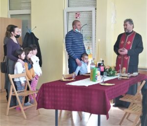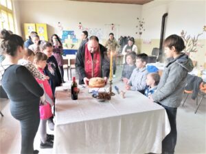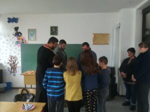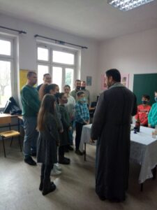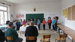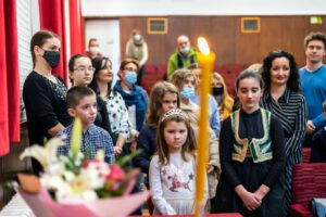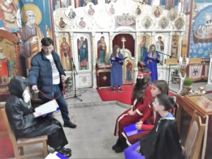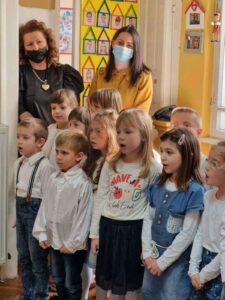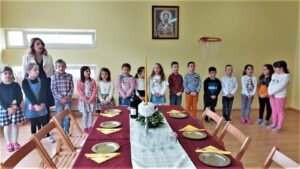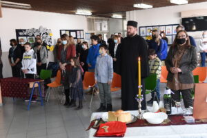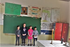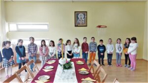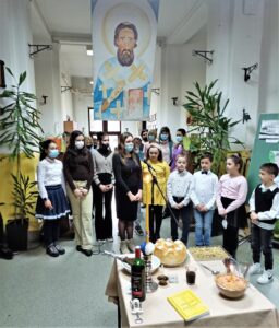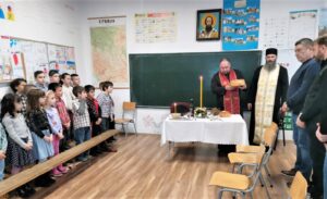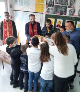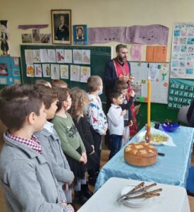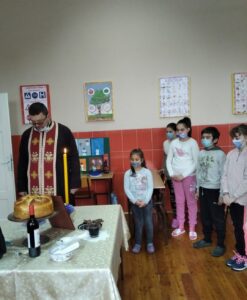 Ученици са својим учитељицама и вероучитељем су припремили пригодан програм, поштујући све препоручене мере ради спречавања пандемије.