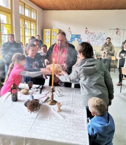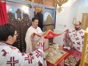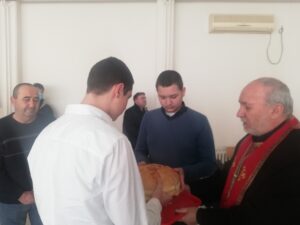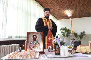 Парохијски свештеник протонамесник Милан Васиљевић осветио је славско жито и пререзао славски колач. Он је свима честитао славу и пожелео пуно здравља и успеха.