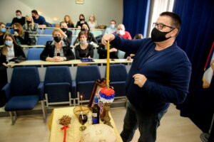 - Ова школа јесте један велики светионик не само овог града, него и читавог нашег краја и наше земље Србије. Многи њени професори и ученици су као мале лучоноше свуда по земљи и свету и сијају зраком светлости знања и љубави и свега оног што су у овој школи, као деца православна и светосавска, научили. Ту искру је свима нама Бог дао, а Свети Сава је разгорео и показао нам да можемо да се њоме руководимо, грејемо и осветљавамо свој животни пут. Нека би Бог дао, молитвама Светог Саве, да ту искру чувамо у себи и једни у другима – поручио је протонамесник Дарко Ђурђевић, благосиљајући ученике и наставнике Ваљевске гимназије.