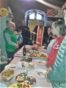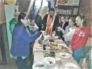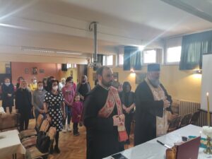 По завршетку богослужбеног сабрања, следујући примеру ране Цркве, чланови Соз-а ,организовали су скромно послужење у сали Црквног дома Храма Силаска Св.Духа на апостоле.