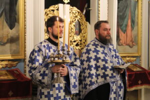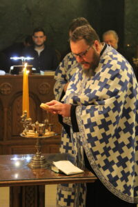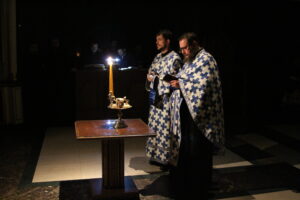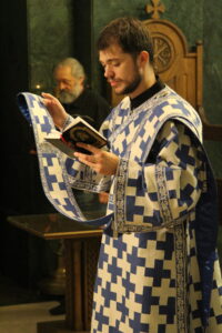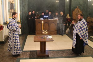 Прослављајући свог заштитника и путеводитеља у Живот вечни, чланови Светосавске омладинске заједнице сабрали су се на вечерње богослужење којим је началствовао духовник СОЗ-а, протонамесник Александар Вучај, уз саслуживање ђакона Александра Петровића.