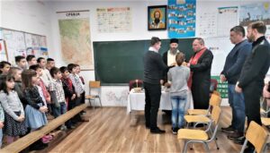 – Нашег просветитеља и учитеља не славимо само ми Срби, него га славе и Руси, Бугари и Грци, славе га чак и поједини Арапи. Он је ударио смернице и темељ, изборио се за аутокефалност Српске Православне Цркве, радио на мирењу, а највише на просвећивању свога рода. Просвећивање је света узвишена служба, а ви, драги професори, поготово сте пројектанти и архитекте душа наших најмилијих и најдражих, а то су деца. Ви, као просветни радници, а и ми, свештеници и духовни пастири који се старамо за узрастање и младих и старих, треба да учимо да сви идемо путем Христовим. Оним путем којим је ишао Свети Сава, јер ми Срби имамо обичај да кажемо да идемо светосавским путем- поручио је протојереј- ставрофор Драган Алимпијевић, који је ученицима и просветарима честитао школску славу.
