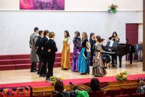 Концерт је започет Мокрањчевом Химном Светом Сави „Ускликнимо с љубављу“ у сјајној интерпретацији Анастасије Радовановић, ученице другог разреда СМШ, и Теодоре Радовић, ученице трећег разреда СМШ, које је припремила проф. Милица Степановић- Бабамилкић.