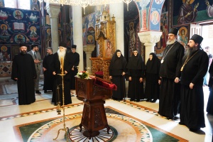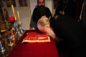 У оквиру боравка у Ваљевској епархији, Епископи Иринеј, Дамаскин и Јеротеј, у пратњи домаћина Епископа ваљевског Г. Исихија, посетили су манастир Ћелије. Дочекало их је сестринство обитељи предвођено игуманијом мати Гликеријом. Епископи су се поклонили моштима Преподобног Оца Јустина, духовног оца Владике Иринеја и надахнућа бројних служитеља олтара Божјег широм православног света.