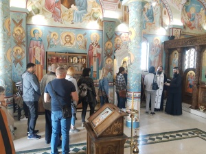 - Овај храм дело је пастирске бриге и љубави блаженопочившег Владике Милутина, који је препознао потребу своје духовне деце за близином Светог Нектарија. Свакодневно нам долази верни народ из нашег краја, али и свих делова наше земље и иностранства. Драго ми је што сте данас дошли групно и радоваће нас да нам и убудуће долазите било као група, било појединачно- рекао је отац Александар Филиповић.