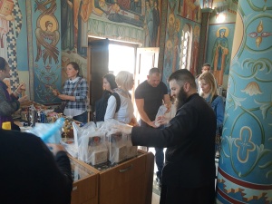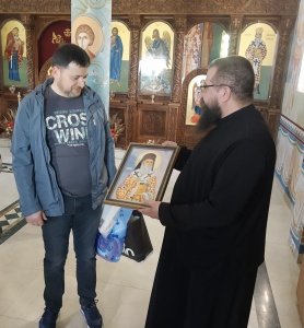 Упознавши госте са историјатом храма, он је прочитао молитву за здравље крај честице моштију светитеља и помазао их освећеним уљем. Сваком понаособ, у име братства Храма Васкрсења Христовог, свештеник Филиповић је даривао књижицу у којој су садржане „Беседа о правој вери“ Светог Саве и „Небеска Литургија“ Светог Владике Николаја, уље, воду и иконицу. Удружење, пак, он је обрадовао иконом Светог Нектарија великог формата, израђеном по благослову Владике Милутина. Поред братстава двају храмова, у даривању гостију учествовали су и Коло српских сестара „Преподобна Мати Евгенија“, чији је духовник отац Александар Филиповић и Светосавска омладинска заједница, коју предводи ђакон Мија Бојиновић. Сестре су за Удружење припремиле пакет производа неопходних за боравак у канцеларији (кафа, чај, хигијенске потрепштине), док су им Светосавци поклонили славски сет. Подстакнути пажњом оца Александра Филиповића и идејом чланице СОЗ- а Мирјане Живковић, чланови Удружења мултипле склерозе Ваљево одлучили су да Светог Нектарија Егинског прослављају као свог небеског заштитника. Тако, ове године ће се на његов празник (22. новембар) први пут свечарски окупити у њиховом дому у Поп Лукиној улици да радост поделе са свим драгима људима, који подржавају њихов рад.