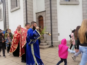 - То нам указује да треба сви да постанемо као деца. Да имамо чисте душе и срца, да немамо злобу. Само такви можемо истински да прославимо Бога. Сви смо ми деца у односу на Бога Оца, а сви смо Његова деца, зато што нас је Исус Христос усиновио, учинио нас синовима и кћерима Бога Оца. Зато, као деца, саберимо се и ми данас у Духу Светоме и ускликнимо победнички поздрав „Осана“, поздрав који се узноси само Богу- закључио је Владика Исихије и позвао окупљене да се саберу на Светој Литургији и дочекају заједно Христово Васкрсење.