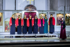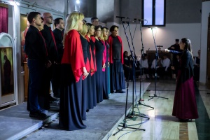 Од Молитве Господње „Оче наш“ у аранжману Јосифа Маринковића, преко „Тебе појем“ Миодрага Говедарице и неколико композиција непознатих аутора па све до Васкршњег тропара за крај, чланови хорова одушевили су све који су дошли да прослављање Цвети заокруже уз њихову песму. Посебно вредно пажње било је извођење „Господи помилуј“, где су се у улози солисте сопрана били проф. Милица Степановић – Бабамилкић, односно баритона протонамесник Бранко Чолић, који предводи Хор свештеника и богослова.