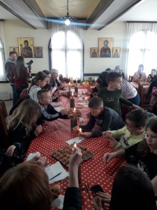 Традицију даривања за Васкршње празнике Православна народна хришћанска заједница „Воздвиженије Часног Крста“, у сарадњи са Удружењем „Загрљај“, наставља са нарочитом пажњом и љубављу. Поред прикупљања хуманитарне помоћи за материјално угрожене суграђане о којима се старају, чланови ПНХЗ-а су у парохијском дому Храма Покрова Пресвете Богородице са члановима „Загрљаја“ организовали шарање јаја, која ће за Васкрс бити подељена штићеницима Казнено – поправног завода Ваљево. Традиционалном техником воска, разним цртежима украшено је 700 комада јаја, која ће за Највећи хришћански празник бити подељена онима који га, услед разних несрећних околности, проводе ван породичних домова. Поред чланова двају удружења, у радионици је учествовало четрдесетак малишана, њихове деце, која већ сада показују жељу да наставе путем творења милосрдних дела родитеља.