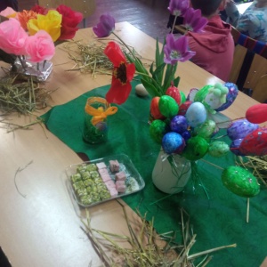 Ученици нижих разреда показали су изузетну креативност , израдивши велики број радова, честитки, шарених јаја и других рукотворина посвећених Највећем хришћанском празнику-Васкрсењу Господа нашег Исуса Христа.