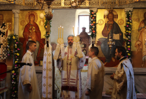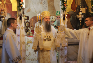 У пратњи Патријарха Порфирија налази се више архијереја, међу којима је Преосвећени Епископ ваљевски Г. Исихије са својим замеником протонамесником Филипом Јаковљевићем