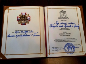 У име свих сестара и у присуству духовника Кола о.Немање Павловића током предивне трпезе љубави, коју је за сестре приредио епископ са својим сарадницима, уручен је орден председници Кола госпођи Ренати Марковић у епархијском двору у Карловцу.