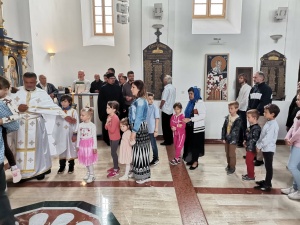 - Као што свака биолошка мајка жели да јој деца буду чистог срца, тако се и мајка Црква и Господ Христос радују када у свети храм сви долазимо чистог срца. То је наша бескрвна жртва коју овде приносимо Богу као благодарје за све дарове. Дар вечног живота, који нам је Христос даровао, јесте дар на који не можемо узвратити новцем колико год да је велико наше богатство и наш поклон. Зато, Црква Божја и Христос од нас траже да у храм долазимо чистог срца, са љубављу и са покајањем- рекао је протонамесник Саша Максимовић.