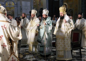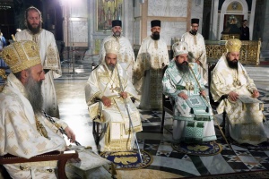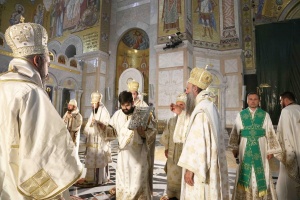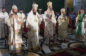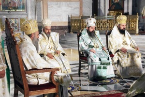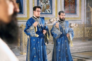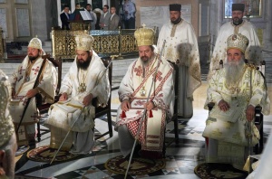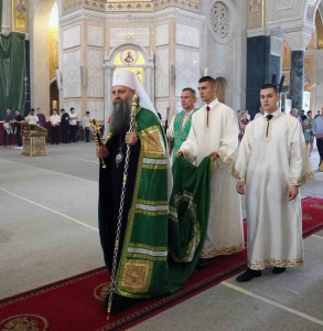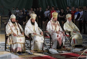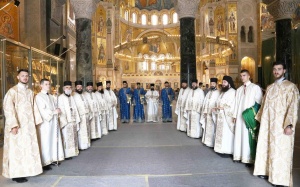 Саслуживали су преосвећена господа епископи крушевачки Давид; далматински Никодим, ваљевски Исихије, изабрани шабачки Јеротеј; изабрани западноевропски Јустин; марчански Сава; хумски Јован, као и високопреподобни архимандрит Нектарије, изабрани Епископ јегарски. Том приликом Његова Светост Патријарх српски г. Порфирије је беседио:
