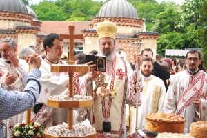 – Боравио је са њима и најављивао шта ће имати да се збуде. На крају је рекао да одлази Оцу Своме и Богу. Рекао је да мора да оде да би после од Оца послао Духа Светог, Који ће их научити свакој мудрости и просветити људски род и у Коме ће се основати Црква, десетог дана по Вазнесењу на празник Силаска Светог Духа. Тек тада ученици бивају потпуно утврђени благодаћу Божјом и могу да крену у мисију проповедања речи Божје по целом свету. Али, сада се Господ узноси на небо у обе Своје природе. И то је највећа тајна – да ми у Њему улазимо у заједништво са Светом Тројицом. Усиновљени смо кроз Њега Богу Оцу, јер он је Син Божји, а нас је прихватио као Своју браћу… Од тренутка Вазнесења и наша људска природа седи са десне стране Оца у Господу Исусу Христу. И све нас очекује та слава, ако живимо по заповестима које нам је изобилно дао у Својој љубави и Духу Светом – објаснио је Владика Исихије тајну празника Вазнесења Господњег и честитао славу сабранима у убском храму.