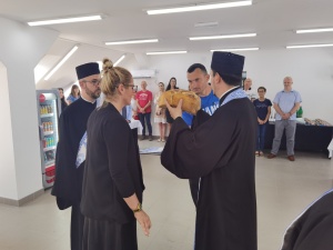 - Човек је створен да узраста и да се пење ка небесима. Наше назначење и циљ није земља или, не дај Боже, под земљом, већ ни мање ни више, небеса. Зато је данашњи дан велики дан и велики празник. Једна лепа пословица каже:“Када год ткаш нешто, вежи конце за небо.“ Тако, и ја вама, директорки и свим запосленима, желим да посао који радите обављате часно, поштено, у складу са савешћу, али да увек имате на уму да је циљ свега што радимо на небесима- рекао је отац Дарко Ђурђевић. Он је пренео поздраве и благослове Преосвећеног Епископа ваљевског Г. Исихија, који није био у могућности да дође, али је пожелео свим радницима „Видрака“ да у радости прославе славу и имају сваког добра у животу и раду.