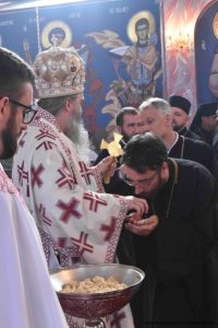 …Овај храм обилује симболима који су на наше спасење драга браћо и сестре. Оно што је некада био симбол таме – гробница, овде постаје симбол свјетлости. Оно што је био симбол смрти, овде у Светом храму постаје симбол живота и на крају оно што је некада био симбол туге и очајања – данас постаје симбол наде. Зато нас свака литургија упућује на главну ствар у Светом Јеванђељу – тему празног гроба и радости која долази након Васкрсења…