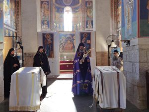 Беседећи после прочитаног јеванђелског зачала, Преосвећени владика Исихије је поучио верни народ о лику светих анђела, подсећајући присутне да су свети анђели створени пре стварања овог видљивог света, да их је небројено мноштво и да су то словесна бића, али и упозорио на постојање палих анђела, који су злоупотребили своју слободну вољу, у својој самодовољности себе ставили на прво место и тиме отпали од Бога. „Данас славимо светог архангела Гаврила и овде, на овим дивним зидинама манастирским, можемо да видимо, на западном зиду, изображене све познате архангеле. Има их девет које познајемо и сваки од њих представља неку од врлина Божијих, а свети архангел Гаврило јесте онај који објављује тајне Божје. Анђели су, као бића светлости и бића доброте, потпуно ненаметљиви и своју силу у потпуности могу да контролишу и никада се не размећу тиме, већ само када ми чинимо огроман напор да их призовемо у своје животе и да их молимо да нас надахњују, они то чине, поштујући нашу слободу. Са њима заједно чинимо Цркву, која је и небеска и земаљскаˮ, поручио је владика Исихије.