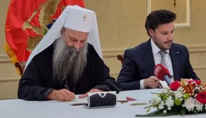 Његова Светост Патријарх српски г. Порфирије и црногорски премијер Дритан Абазовић потписали су данас, 3. августа 2022. године, у Подгорици Темељни уговор између Српске Православне Цркве и Црне Горе.