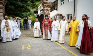 На крају Свете Литургије, Владика Исихије је подсетио да се данас прославља Праведна Ана, мајка Богородице, једине коју зовемо – Пресвета.