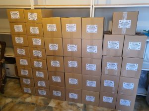Сестре су се посветиле паковању сваког пакета појединачно и водиле рачуна о броју чланова, да ли има школске деце, беба….Сваки пакет је садржао преко 30 производа.Да бисмо имале довољно школског прибора за све малишане у помоћ нам је притекла књижара „Ларго“.