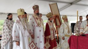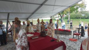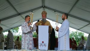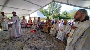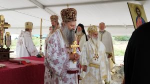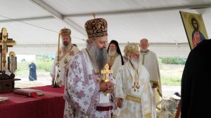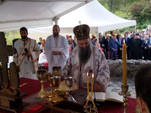 Његова Светост Патријарх српски г. Порфирије служио је 10. септембра 2022. године, поводом централне прославе празника Светих новомученика јасеновачких, свету архијерејску Литургију у манастиру Светог Јована Крститеља у Јасеновцу.