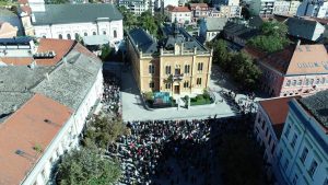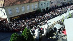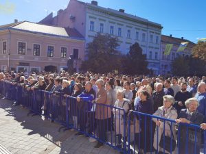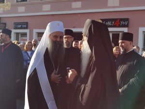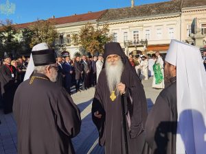 Испред Владичанског двора у Новом Саду Светејшег Патријарха и архијереје дочекало је више хиљада верног народа из свих крајева Епархије бачке, предвођеног Његовим Преосвештенством Епископом бачким господином Иринејем и свештенством Бачке епархије.