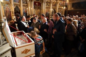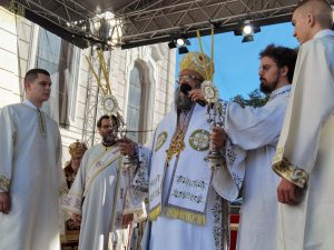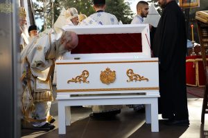 На самом крају, верни народ је приступио целивању светих моштију, које су свечано положене у Саборни храм Светог великомученика Георгија у Новом Саду.