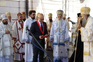 По отпусту Литургије, Његова Светост Патријарх српски господин Порфирије доделио је орден Светог Саве другог степена господину Милошу Вучевићу, градоначелнику Новог Сада, у знак признања за његов драгоцени допринос унапређењу односа између Цркве и Државе, посебно пак Епархије бачке и Новог Сада, нарочито по питању неговања сећања на невино пострадале у Погрому у Бачкој (1941 – 1944). Акт о додели ордена Светог Саве градоначелнику Новог Сада прочитао је архимандрит Нектарије (Ђурић), главни секретар Светог Архијерејског Синода. Светејши Патријарх је градоначелнику Новог Сада упутио честитке, а потом се присутнима обратио Његово Преосвештенство Епископ бачки г. Иринеј: