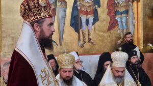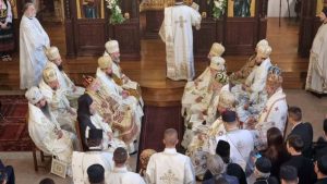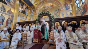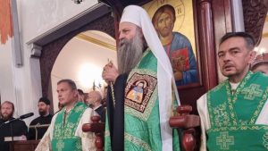 -Ваша Светости, Свјатјејши Архиепископе пећки, Митрополите београдско-карловачки и Патријарше српски господине Порфирије, Ваша Високопреосвештенства, Ваша Преосвештенства, Ваше Екселенције господо министри и директори управа у Влади Републике Србије, уважена амбасадорко Републике Србије у Француској, часни оци презвитери и ђакони, преподобно монаштво, децо Божја, драга браћо и сестре,