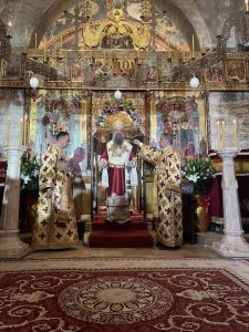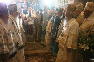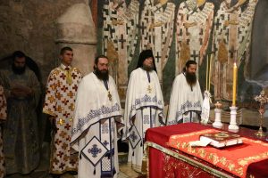 Његова Светост Патријарх српски г. Порфирије началствовао је светом Литургијом у древном манастиру Пећкој Патријаршији уз саслужење Његовог Блаженства Архиепископа охридског и Митрополита скопског Jована; високопреосвећених митрополита дабробосанског Хризостома, црногорско-приморског Jоаникија, будимпештанског и мађарског Илариона из Московске Патријаршије и преспанско-пелагонијског Петра из Македонске Православне Цркве – Охридске Архиепископије; преосвећене господе епископа сремског Василија, будимског Лукијана, бачког Иринеја, жичког Јустина, врањског Пахомија, шумадијског Јована, зворничко-тузланског Фотија, милешевског Атанасија, диселдорфског и немачког Григорија, рашко-призренског Теодосија, западноамеричког Максима, горњокарловачког Герасима, источноамеричког Иринеја, крушевачког Давида, славонског Јована, аустријско-швајцарског Андреја, нишког Арсенија, далматинског Никодима, осечкопољског и барањског Херувима, ваљевског Исихија, шабачког Јеротеја, западноевропског Јустина, стобијског Давида, ремезијанског Стефана, мохачког Дамаскина, марчанског Саве, брегалничког Марка.