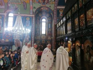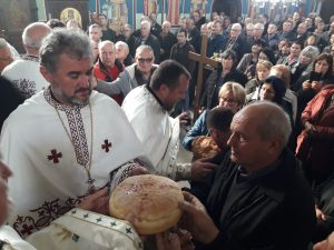 После Свете Литургије је пререзан славски колач и приступило се трпези љубави, коју су за госте са разних страна припремили чланови братства на челу са духовником оцем Зораном Јаковљевићем. Богату трпезу љубави улепшала је пригодна беседа протојереја-ставрофора Љубисава Аџића.