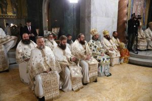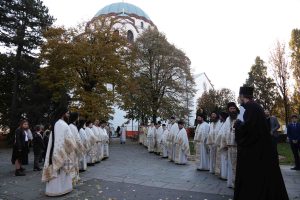 Предстојатељу Српске Православне Цркве су саслуживали Његово Блаженство Архиепископ охридски и Митрополит скопски г. Јован; Његово Високопреосвештенство Митрополит брегалнички г. Иларион; преосвећена господа епископи банатски Никанор, бачки Иринеј, врањски Пахомије, шумадијски Јован, браничевски Игњатије, зворничко-тузлански Фотије, милешевски Атанасије, брегалнички Марко, горњокарловачки Герасим, крушевачки Давид, славонски Јован, бихаћко-петровачки Серхије, нишки Арсеније, осечкопољски и барањски Херувим, ваљевски Исихије, ремезијански Стефан, марчански Сава; изабрани епископи хвостански Алексеј, новобрдски Иларион, јегарски Нектарије, липљански Доситеј и топлички Петар; игумани хиландарски Методије и мрзенички Тихон; архимандрити Агатон и Данило, директор Патријаршијске управне канцеларије; као и многобројно свештенство и свештеномонаштво из више епархија Српске Православне Цркве.