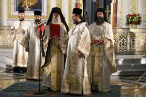 Нека Вас Господ благослови, нека Вам да снаге и нека Његова десница непрестано буде уз Вас како бисте служили тајну Христа и сведочили Христа свету, а то онда било на изграђивање Цркве и самим тим било и Ваш пут спасења. Прими, брате, жезал да напасаш поверено ти стадо Христово. Послушнима нека буде за ослонац и укрепљење, а непослушне и непокорне упућуј и карањем и кротким васпитавањем, у Христу Исусу Господу нашем. Достојан!