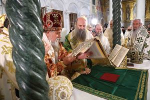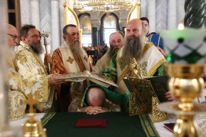 Ваша Светости, то да најфиније ткање Живе Цркве Христове живи у Предању Њеном, да се најдубља мистагогија Јеванђеља Божјег пројављује у житијама светих Божјих угодника и да управо животи светих чувају јединство Цркве Божје, показујући да историјом не управља човек него Бог, знано је и јасно свакој души православној и не захтева никакво појашњавање и доказивање. Ваша Светости, браћо архијереји, часни презвитери, Господо хришћанска, ево оправдања и за моју смелост да се повинујем благослову архијереја наше Цркве и прихватим благословени архипастирски жезал. Молите се, браћо, да ми око остане чисто да бих могао Речју Истине Јеванђеља да служим у Духу Светом народу Божјем на путу искупљења од пропадљивости и смрти у времену које нам је дато. Благословите и опростите!
