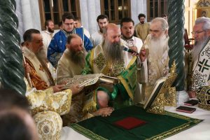 Знамо да сте Ви дубоко укорењени у духовности Православне Цркве, у Јеванђељу Христовом, да сте од најраније младости, од детињства боље говорећи, дошли у својој дванаестој години у једну од наших највећих светиња, у манастир Дечане, да сте од тада па до данас од Косова и Светих Дечана били као монах и у Светој Гори, и у Светој земљи, и да сте, хвала Богу, у Епархији крушевачкој већ више деценија, као и да читав Ваш живот није ништа друго него погружавање управо у Тајну Христа. Зато Вас је Сабор и изабрао за Епископа и ми смо се данас овде сабрали да извршимо хиротонију, али и поред тога да се молимо да Вам Бог да снаге да Ваше искуство стечено у Цркви Христовој, у православној вери, од најранијег детињства до данас буде оно што ћете сведочити као тајну вере и спасења свим људима добре воље, а пре свега онима који су крштени у име Свете Тројице, у име Оца и Сина и Светог Духа, али много шире и више од тога – читавом свету на све четири стране.