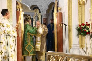 Драги Владико, по промислу Божјем, вољом Духа Светог и саборских Отаца изабрани сте за Епископа хвостанског, изабрани сте да наставите да служите у Цркви Христовој у највећем степену свештеничке службе, у чину Епископа наше помесне Цркве. Епископ не служи своју службу, он је по месту и обличју Христовом, и зато служи Цркви Његовој, Цркви Христовој, вршећи управо Христову службу, служећи свету Литургију – која је тајна Царства небеског, Царства небеског међу нама – где ми постајемо органски благодаћу Божјом сједињени са Христом, али исто тако органски међусобно остајемо једно Тело којем је Глава Господ Христос. Све остало што је служба Епископа извире из служења свете Литургије, јер тајна Царства небеског је истовремено и тајна спасења. Отуда из Литургије служба Епископа извире као служба која служи спасењу света, спасењу људског рода. Зато је Епископ литург и пастир.