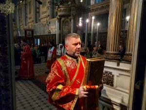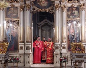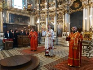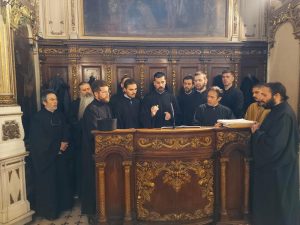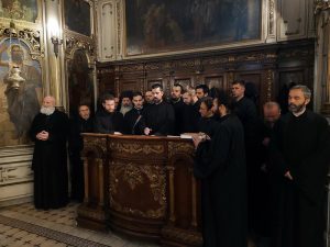 Благољепију свете Литургије допринели су својим појањем чланови хора Школе појања при Црквеној општини новосадској „Свети Јован Дамаскинˮ.