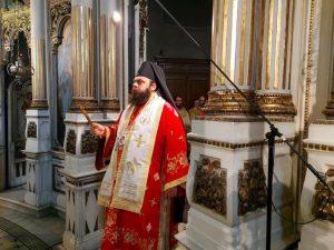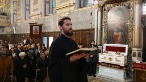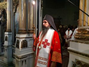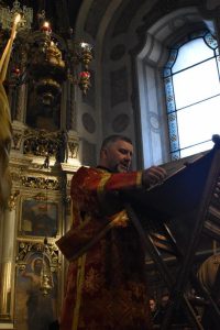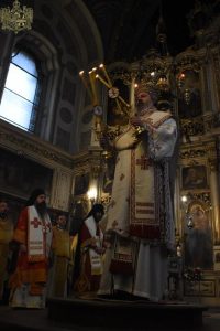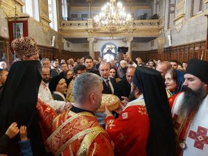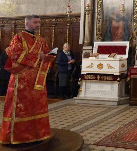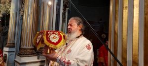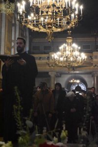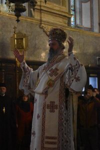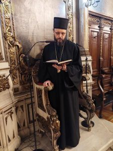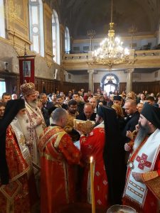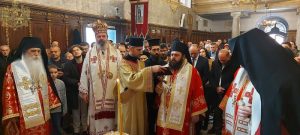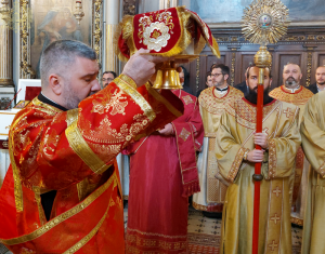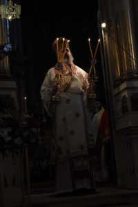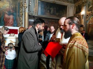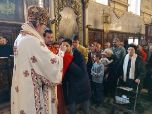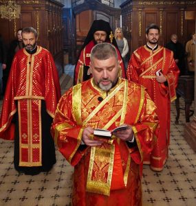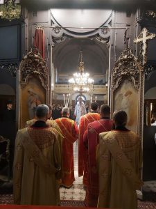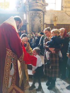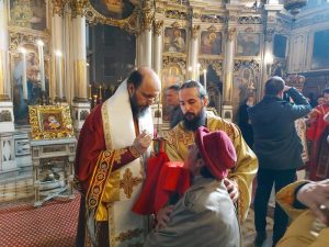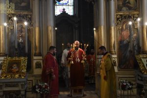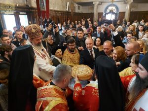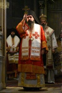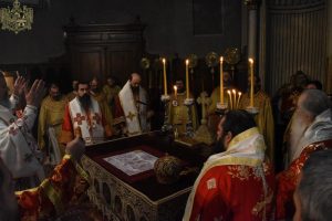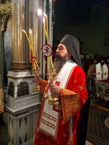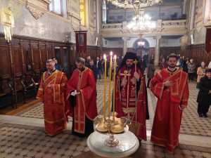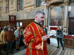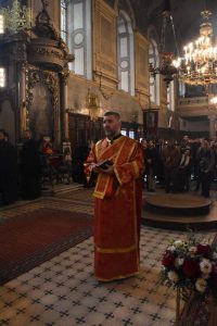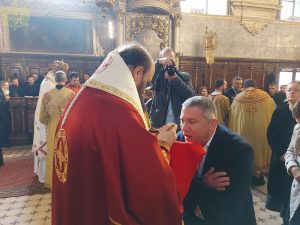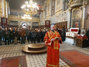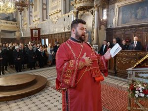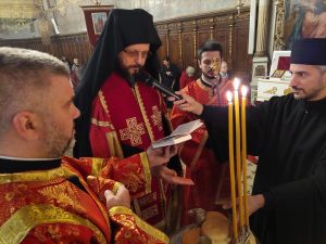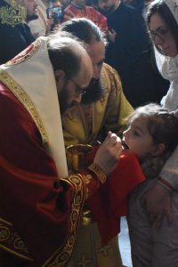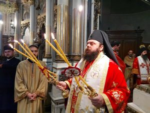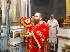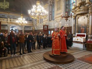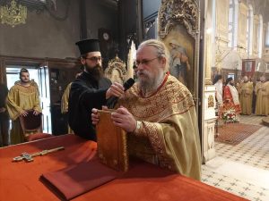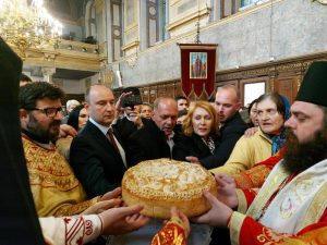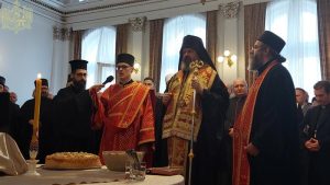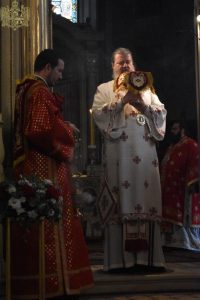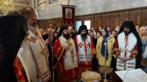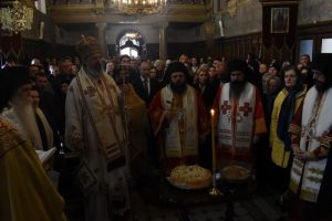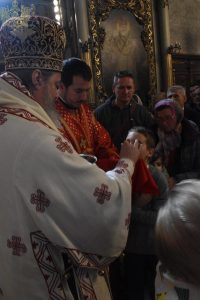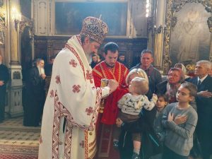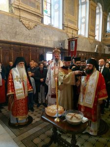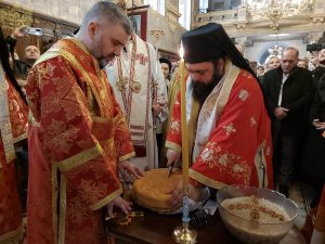 После заамвоне молитве, Епископ осечкопољски и барањски г. Херувим је благословио славске дарове принете у славу Божју, а у част светог великомученика Георгија.