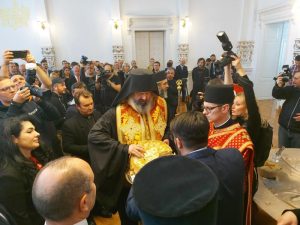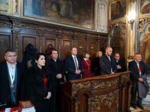 Светој Литургији у Саборном храму су присуствовали: г. Милан Ђурић, градоначелник Новог Сада, госпођа Јелена Маринковић Радомировић, председник Скупштине Града Новог Сада, г. Никола Бањац, генерални секретар Скупштине Аутономне Покрајине Војводине, г. Јарослав Јаворник, бискуп Словачке Евангеличке Цркве а. в. у Србији, г. Мирослав Илић, помоћник покрајинског секретара за културу, јавно информисање и односе са верским заједницама, професор др Драган Станић, председник Матице српске, др Радивоје Стојковић, директор Гимназије „Јован Јовановић Змајˮ, др Весна Туркулов, председник Управног одбора Универзитетског клиничког центра Војводине, г. Петар Ђурђев, директор Историјског архива Града Новог Сада, г. Никола Перваз, председник Црквене општине новосадске и многи други представници друштвеног и културног живота Новог Сада.