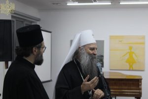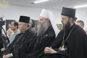 После уводног обраћања модератора трибине г. Александра Ђурђева, поздравно слово присутнима упутио је Патријарх српски г. Порфирије:
