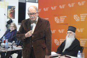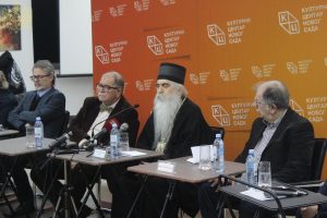 Његова Светост Патријарх српски г. Порфирије и Његово Преосвештенство Епископ бачки г. Иринеј учествовали су 14. децембра 2022. године на трибини под називом „Академик Дарко Танасковић – светионик српске интелектуалне аристократије”, која је одржана у Клубу „Трибина младих” Културног центра Новог Сада, у организацији Института за политичко умрежавање.