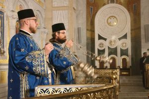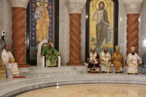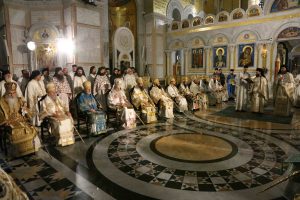 Саслуживали су Његово Блаженство Архиепископ охридски и Митрополит скопски г. Јован, Високопреосвећени Архиепископ михаловско-кошички г. Георгије, Високопреосвећени Митрополит брегалнички г. Иларион и преосвећена господа епископи бачки Иринеј, британско-скандинавски Доситеј, врањски Пахомије, шумадијски Јован, браничевски Игнатије, милешевски Атанасије, рашко-призренски Теодосије, славонски Јован, тимочки Иларион, нишки Арсеније, далматински Никодим, осечкопољски и барањски Херувим, ваељвски Исихије, захумско-херцеговачки Димитрије, шабачки Јеротеј, западноевропски Јустин, стобијски Давид, ремезијански Стефан, мохачки Дамаскин, марчански Сава, хвостански Алексеј, новобрдски Иларион, јегарски Нектарије, липљански Доситеј.