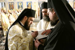 – Ваша Светости, браћо архијереји, часни оци, монаси монахиње, драга браћо и сестре, предат ми је залог вере да архијереј, као предстојатељ литургијског сабрања, возглављујући заједницу Тела Христовог превасходно служи јединству Цркве. Као онај кроз кога се деле дарови Духа Светог на евхаристијску заједницу, његово је да сабира, гради и чува Цркву. Стога је и хиротонија епископа надасве конститутивни догађај читавог богочовечанског организма у коме се огледа тајна Христа и Цркве, тајанствено јединство једног и многих, несливено и нераздељиво. И многи ускликнуше као једним устима и једним срцем: Достојан!, почев од нашег првојерарха, преко сабраних архијереја, свештенства, монаштва и вас, браћо и сестре. Ускликнуше, али тек након извршеног чина, након прочитане молитве и полагања руку, тј. након силаска Духа Светог, јер нико од везаних телесним похотама и сластима није достојан да се приближи Цару славе, али божанска благодат која немоћи исцељује и недостатке допуњује и која нас сабира данас, али и коју смо заједно призвали, удостојила ме је да ипак завирим и нађем се тамо где је и анђелима недоступно.