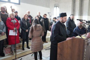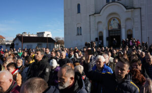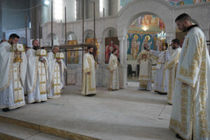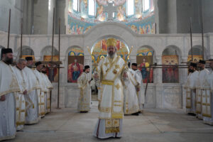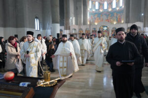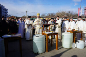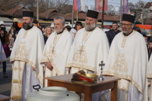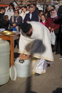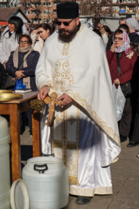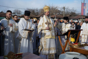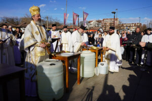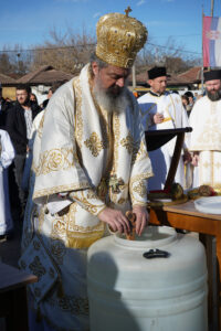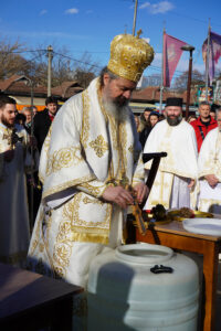 Након Свете Архијерејеске Литургије, на платоу испред саборног храма Владика Исихије је обавио освећење Богојављенске водице, благословивши верне да им на здравље и свако добро буде.