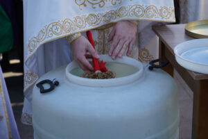 После заамвоне молитве, свештеници су литијски са верним народом, изашли испред храма, где је обављено велико освећење воде. Након освећења, и троструког поздрава „Бог се јави – Ваистину се јави“, верни народ је захватио воду, коју су понели кућама да им послужи за здравље и духовни напредак.