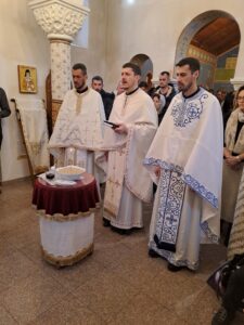 Литургијско сабрање у Недељу праштања у Храму Светих бесребреника Козме и Дамјана предводио је отац Дарко Ђурђевић, уз саслуживање јереја Бранка Јовановића и свештенослужитеља при овој богомољи јереја Драгана Станојевића,као и молитвено учешће великог броја верника.
