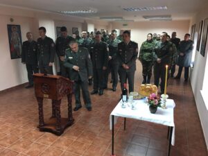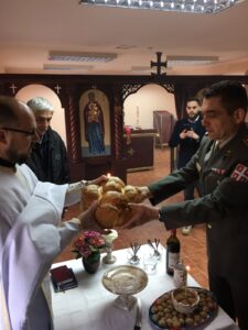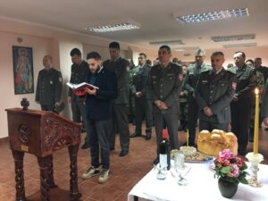 Славећи Светог Владику Николаја, који је као пастир Христов војевао за Свето јеванђеље и свој, али и васцели хришћански род широм планете, у молитвеном дому касарне у којој данас стасавају нове генерације бранитеља отаџбине, част је сетити се светих предака који су положили животе за слободу и све вредности, којима је украшен човек као боголико биће. Било их је много у нашем роду, подсетио је у литургијској проповеди јереј Величко Илић, старешина Храма Покрова Пресвете Богородице на Светој Литургији, коју је служио на умрли дан Светог Владике Николаја у капели њему посвећеној у касарни, која носи име славног војсковође и савременика му Живојина Мишића.